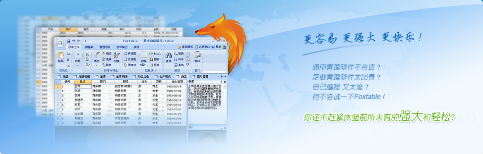 Foxtable不僅是一個(gè)優(yōu)秀的應(yīng)用軟件,同時(shí)又是一個(gè)高效率的開發(fā)工具,幾乎人人都能掌握。普通人也能開發(fā)出讓資深程序員目瞪口呆的軟件,不再是天方夜譚。